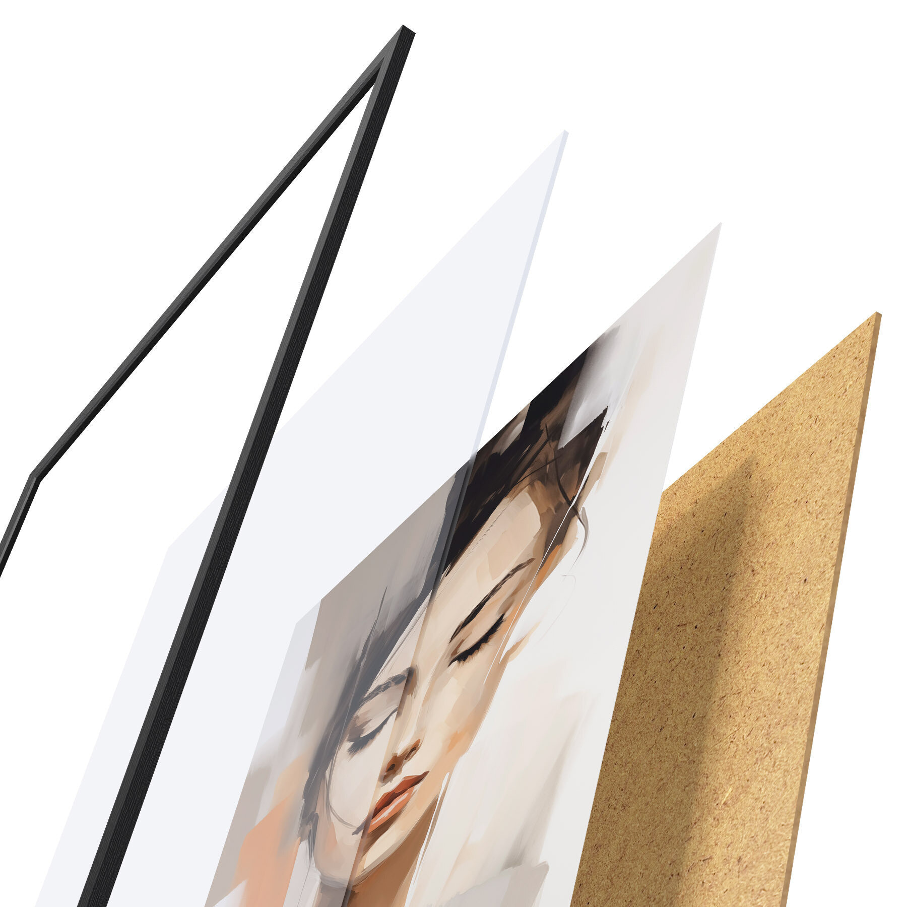 Plakát se skládá z rámu, plexiskla, tištěného obrazu a dřevotřískového podkladu. Díky úchytům na zadní straně lze plakát ihned zavěsit na zeď.