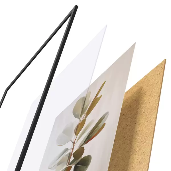 Plakát se skládá z rámu, plexiskla, tištěného obrazu a dřevotřískového podkladu. Díky úchytům na zadní straně lze plakát ihned zavěsit na zeď.
