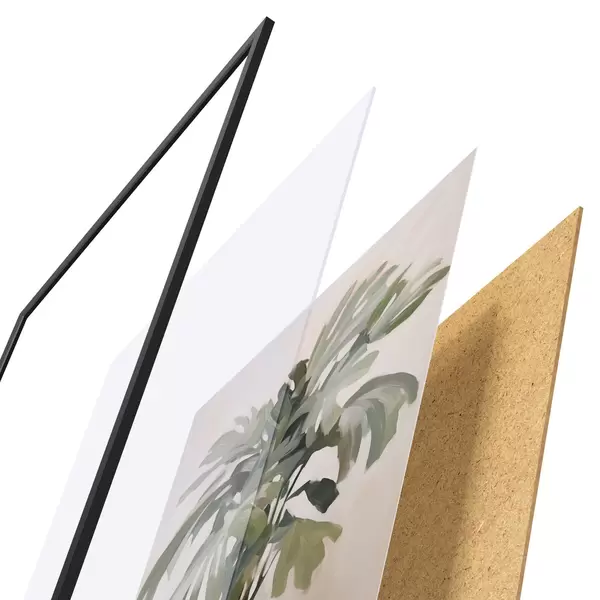 Plakát se skládá z rámu, plexiskla, tištěného obrazu a dřevotřískového podkladu. Díky úchytům na zadní straně lze plakát ihned zavěsit na zeď.