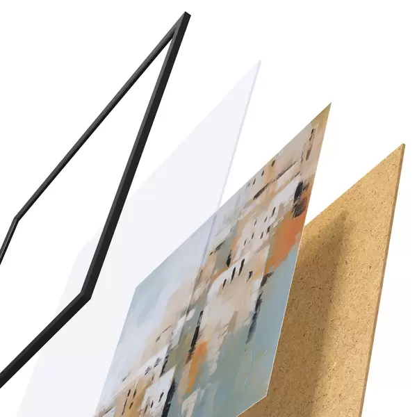 Plakát se skládá z rámu, plexiskla, tištěného obrazu a dřevotřískového podkladu. Díky úchytům na zadní straně lze plakát ihned zavěsit na zeď.