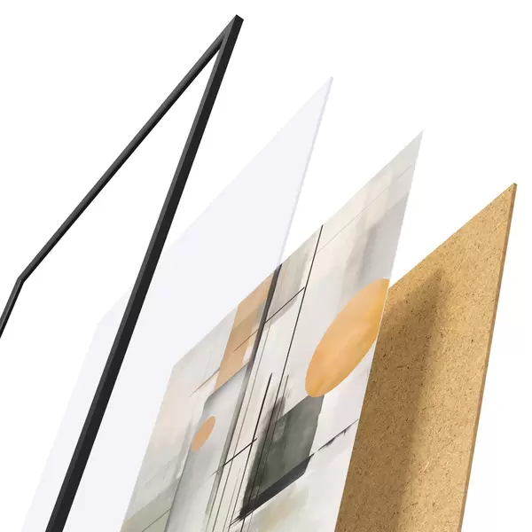 Plakát se skládá z rámu, plexiskla, tištěného obrazu a dřevotřískového podkladu. Díky úchytům na zadní straně lze plakát ihned zavěsit na zeď.
