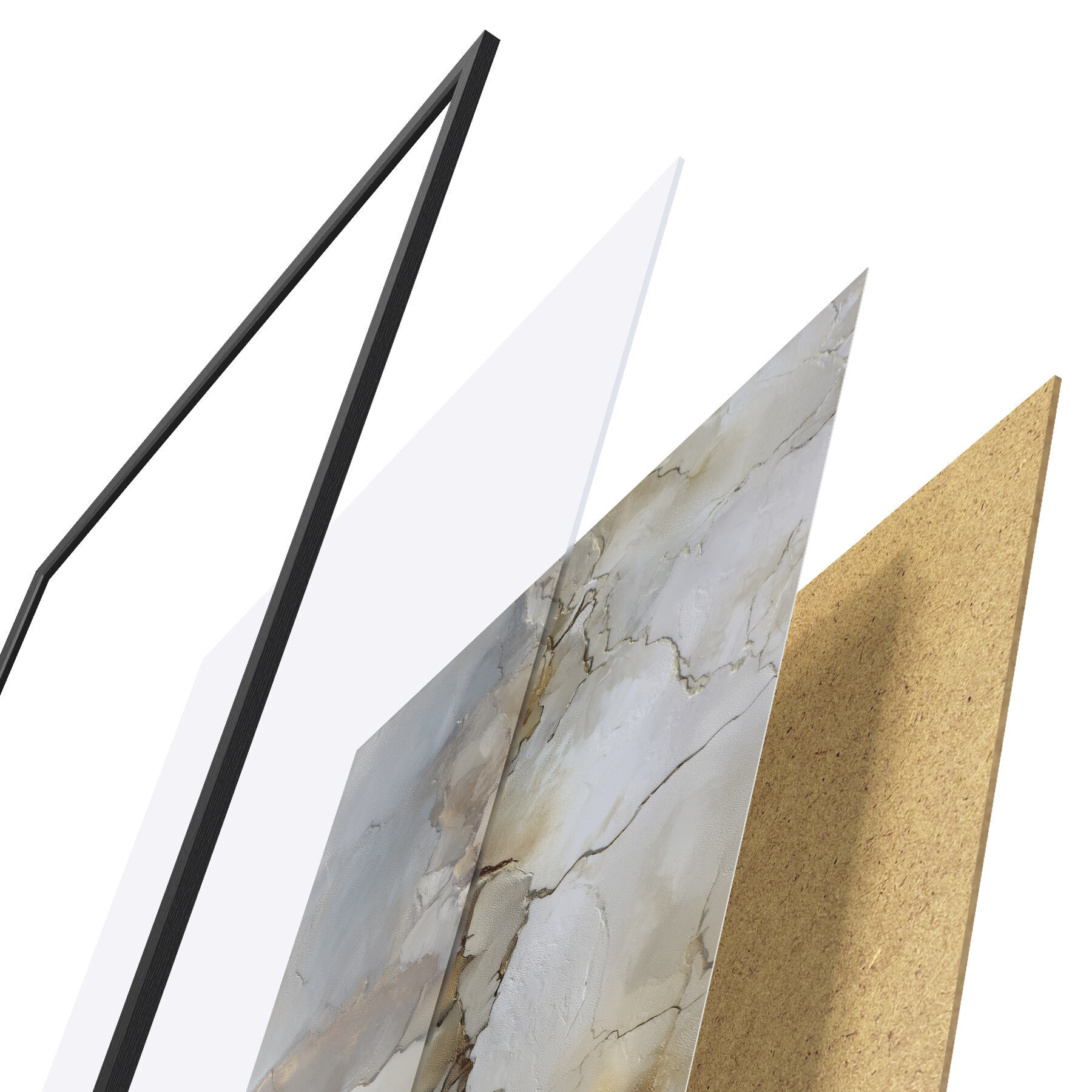 Plakát se skládá z rámu, plexiskla, tištěného obrazu a dřevotřískového podkladu. Díky úchytům na zadní straně lze plakát ihned zavěsit na zeď.