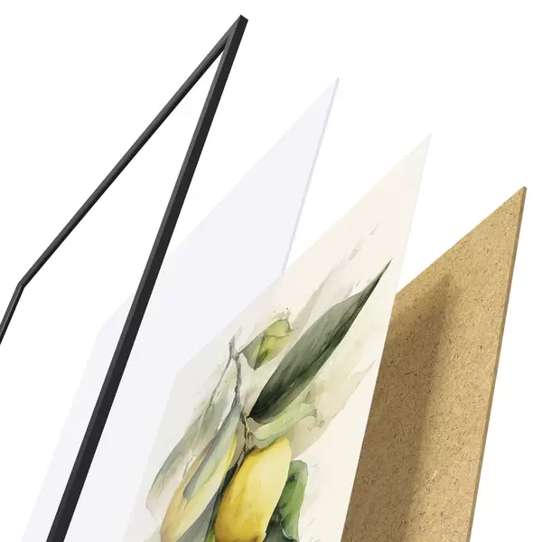 Plakát se skládá z rámu, plexiskla, tištěného obrazu a dřevotřískového podkladu. Díky úchytům na zadní straně lze plakát ihned zavěsit na zeď.