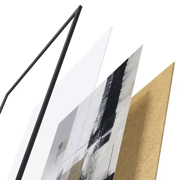 Plakát se skládá z rámu, plexiskla, tištěného obrazu a dřevotřískového podkladu. Díky úchytům na zadní straně lze plakát ihned zavěsit na zeď.