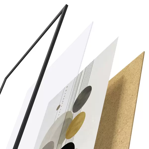 Plakát se skládá z rámu, plexiskla, tištěného obrazu a dřevotřískového podkladu. Díky úchytům na zadní straně lze plakát ihned zavěsit na zeď.