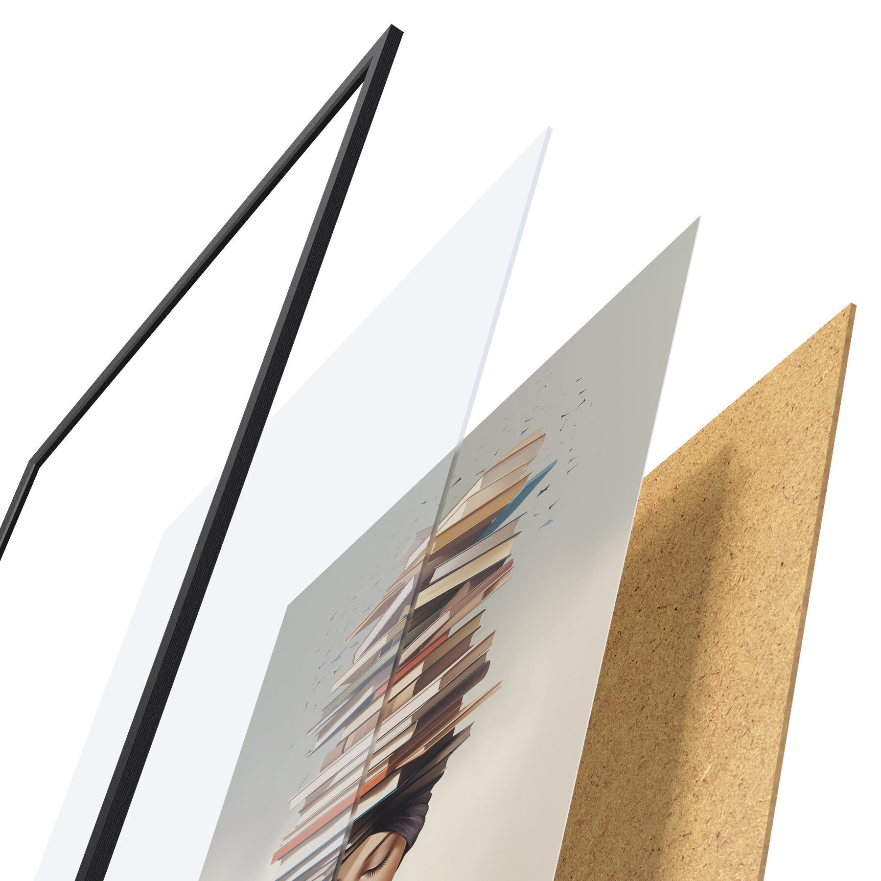 Plakát se skládá z rámu, plexiskla, tištěného obrazu a dřevotřískového podkladu. Díky úchytům na zadní straně lze plakát ihned zavěsit na zeď.
