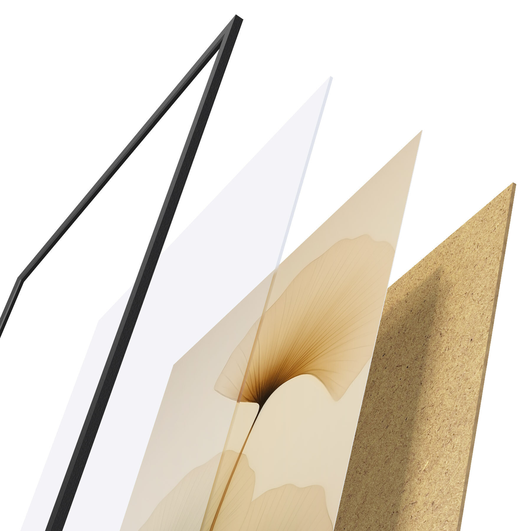 Plakát se skládá z rámu, plexiskla, tištěného obrazu a dřevotřískového podkladu. Díky úchytům na zadní straně lze plakát ihned zavěsit na zeď.