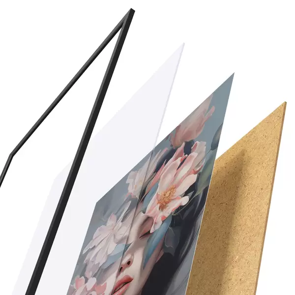 Plakát se skládá z rámu, plexiskla, tištěného obrazu a dřevotřískového podkladu. Díky úchytům na zadní straně lze plakát ihned zavěsit na zeď.