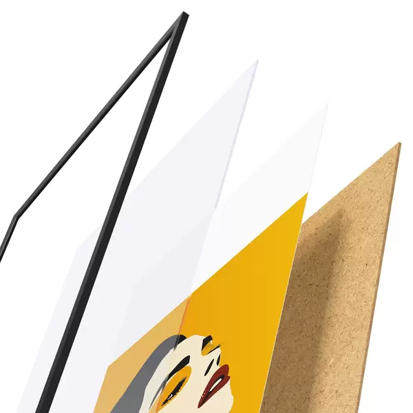 Plakát se skládá z rámu, plexiskla, tištěného obrazu a dřevotřískového podkladu. Díky úchytům na zadní straně lze plakát ihned zavěsit na zeď.