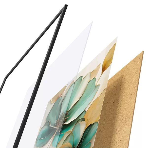 Plakát se skládá z rámu, plexiskla, tištěného obrazu a dřevotřískového podkladu. Díky úchytům na zadní straně lze plakát ihned zavěsit na zeď.