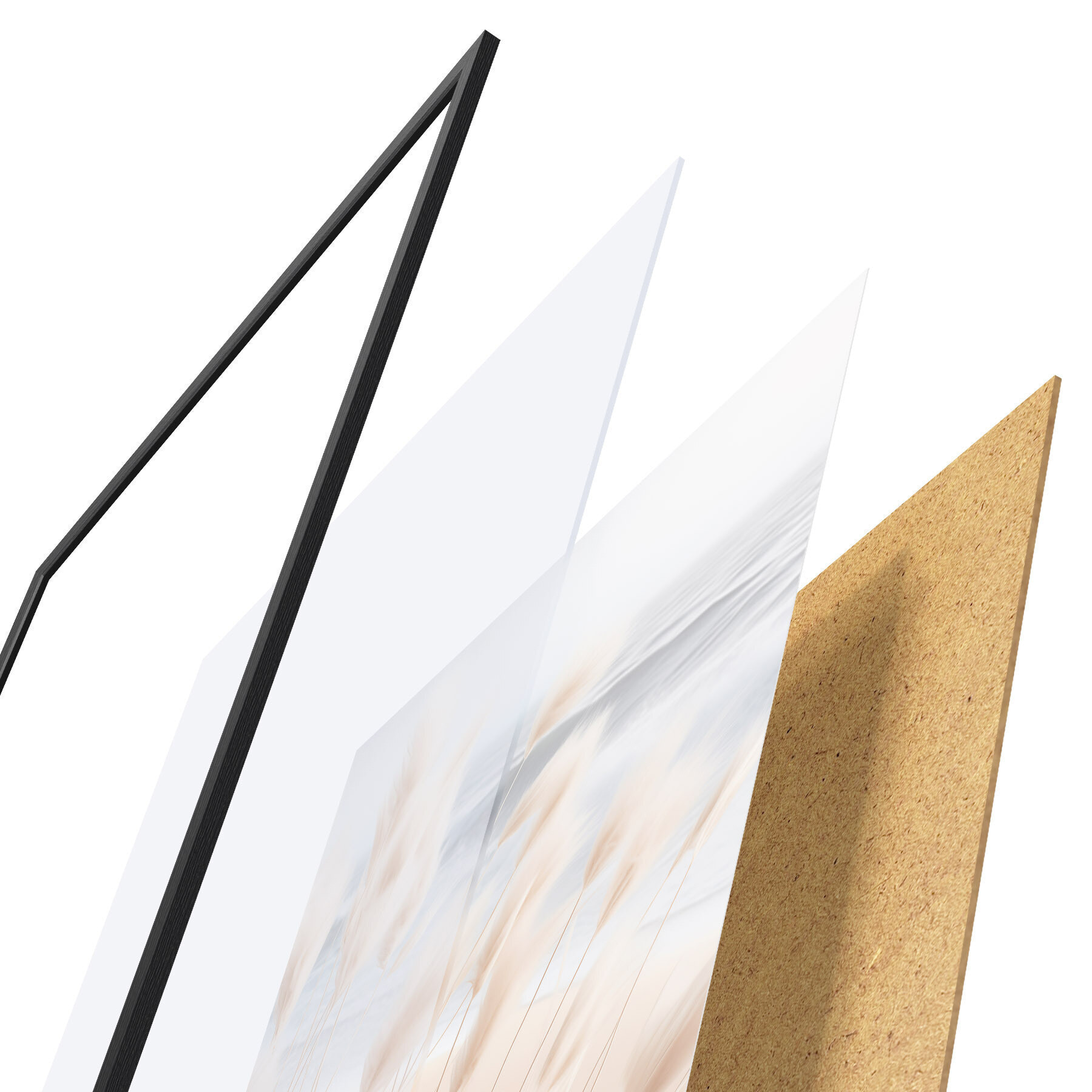 Plakát se skládá z rámu, plexiskla, tištěného obrazu a dřevotřískového podkladu. Díky úchytům na zadní straně lze plakát ihned zavěsit na zeď.