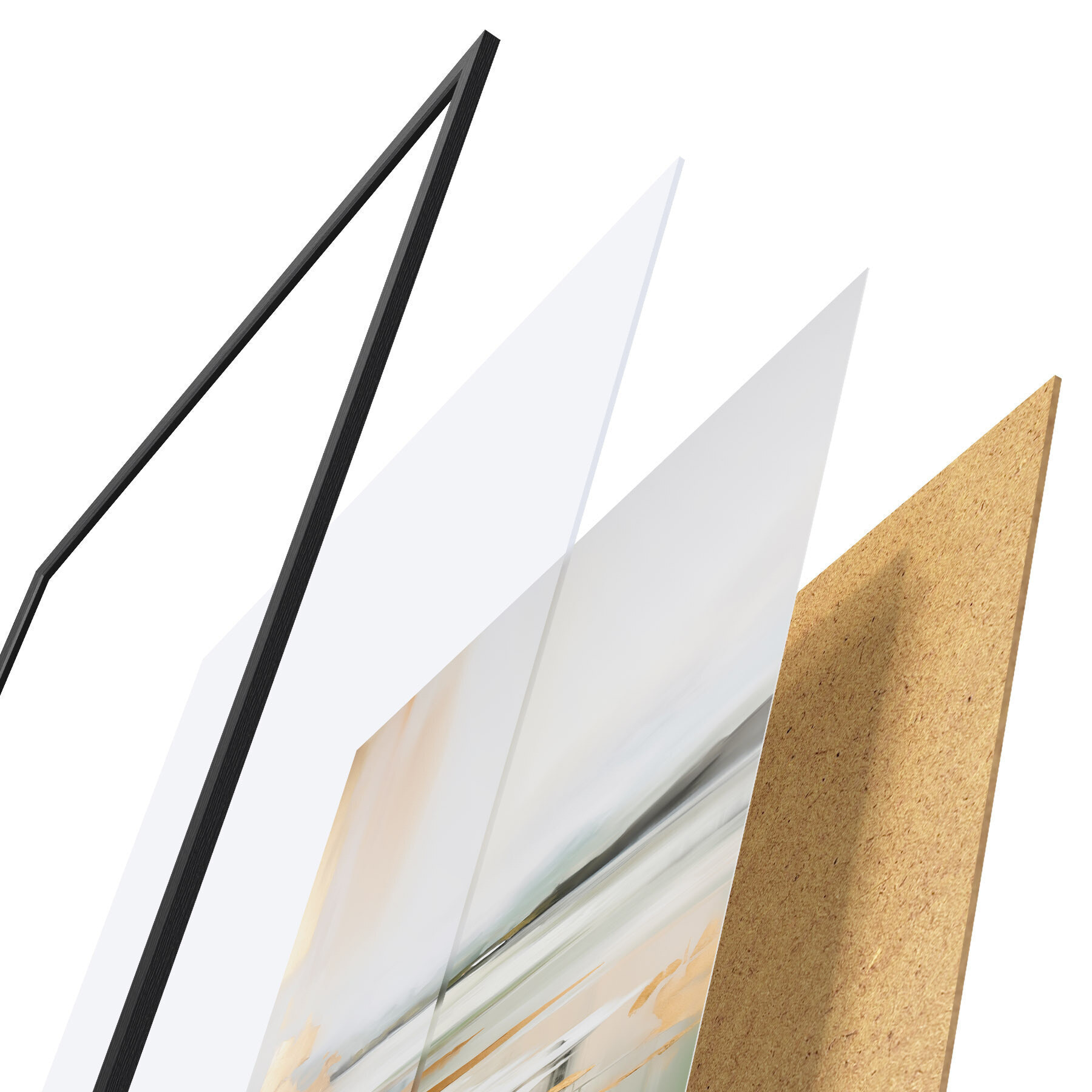 Plakát se skládá z rámu, plexiskla, tištěného obrazu a dřevotřískového podkladu. Díky úchytům na zadní straně lze plakát ihned zavěsit na zeď.
