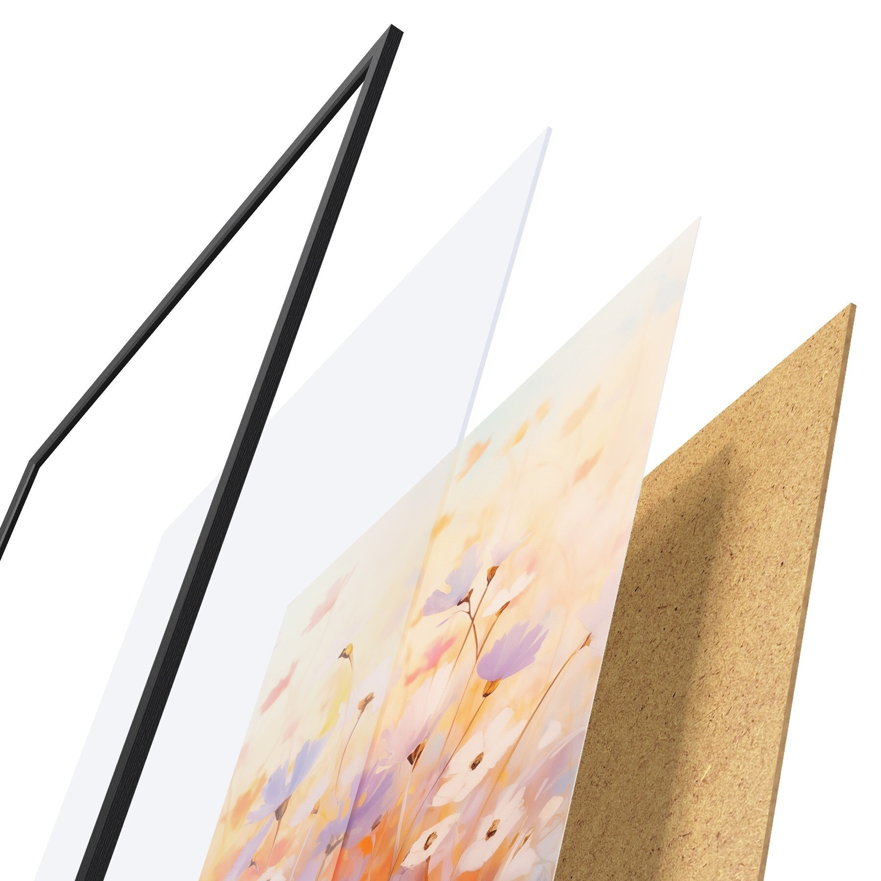 Plakát se skládá z rámu, plexiskla, tištěného obrazu a dřevotřískového podkladu. Díky úchytům na zadní straně lze plakát ihned zavěsit na zeď.