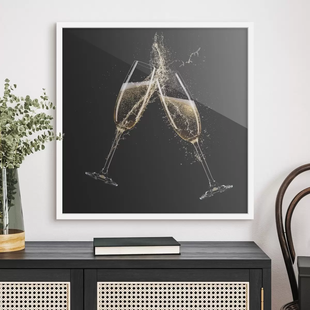 Plakát se skládá z rámu, plexiskla, tištěného obrazu a dřevotřískového podkladu. Díky úchytům na zadní straně lze plakát ihned zavěsit na zeď.