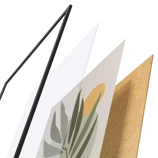 Plakát se skládá z rámu, plexiskla, tištěného obrazu a dřevotřískového podkladu. Díky úchytům na zadní straně lze plakát ihned zavěsit na zeď.