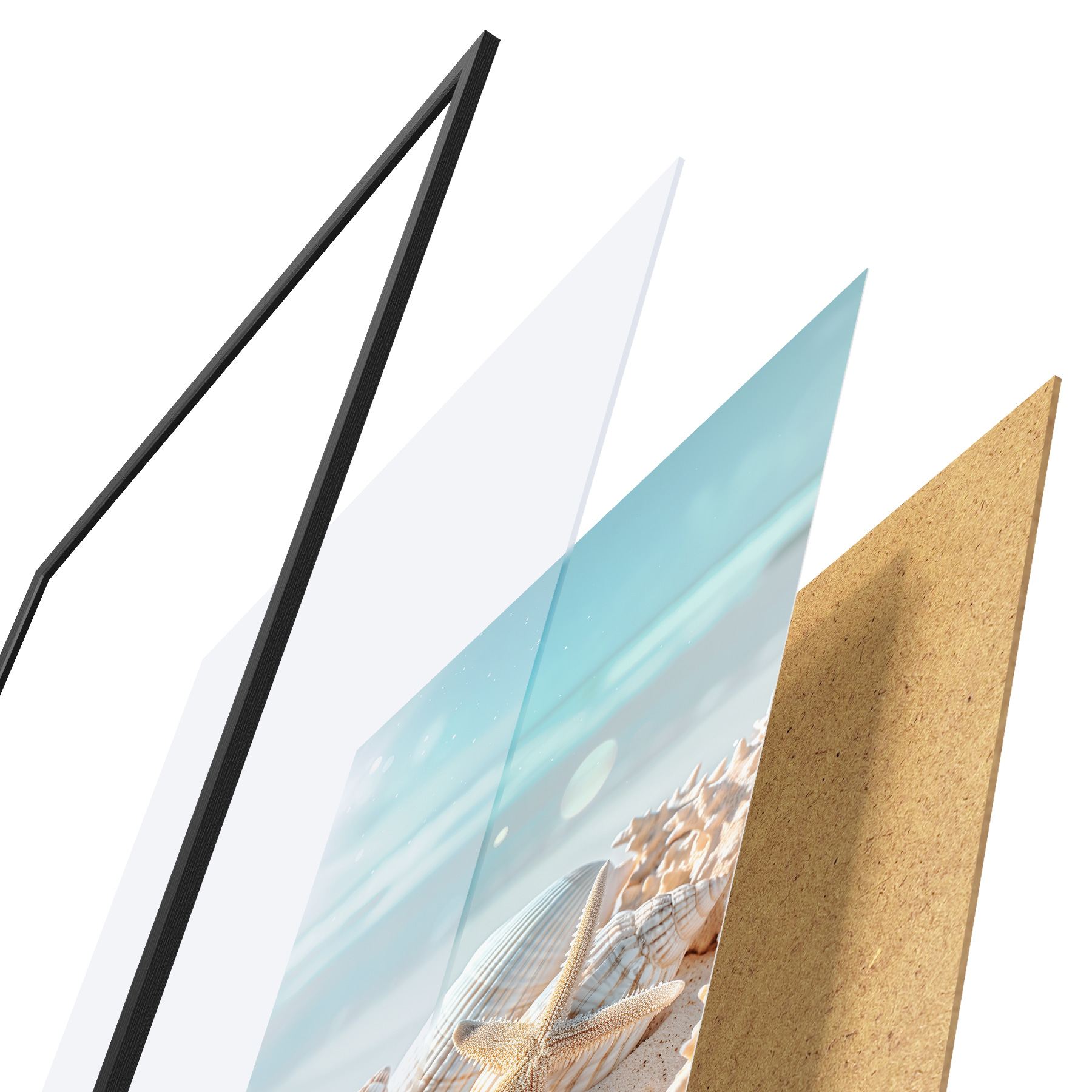 Plakát se skládá z rámu, plexiskla, tištěného obrazu a dřevotřískového podkladu. Díky úchytům na zadní straně lze plakát ihned zavěsit na zeď.
