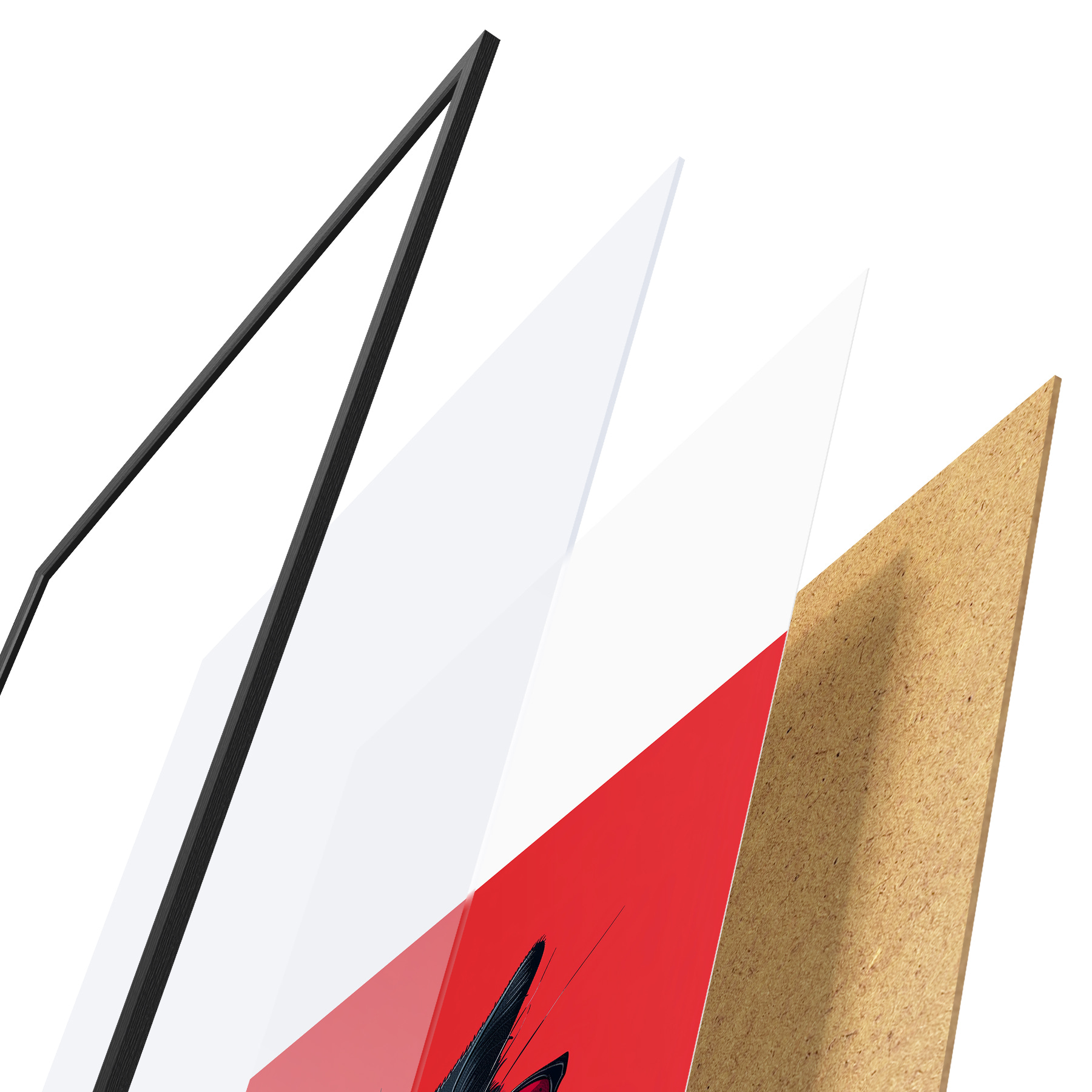 Plakát se skládá z rámu, plexiskla, tištěného obrazu a dřevotřískového podkladu. Díky úchytům na zadní straně lze plakát ihned zavěsit na zeď.
