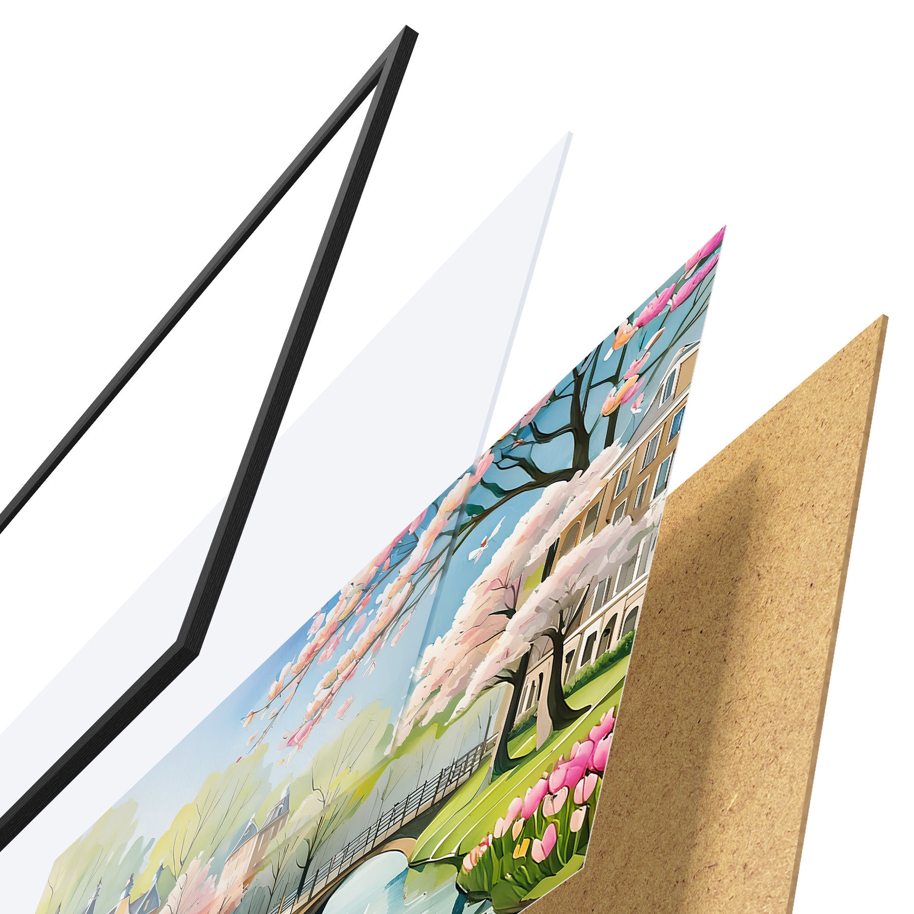 Plakát se skládá z rámu, plexiskla, tištěného obrazu a dřevotřískového podkladu. Díky úchytům na zadní straně lze plakát ihned zavěsit na zeď.