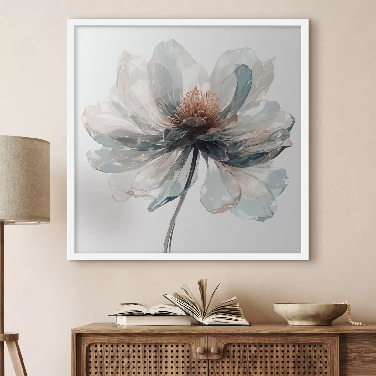 Poster Průhledný modrý květ na bílém pozadí Č. f40067