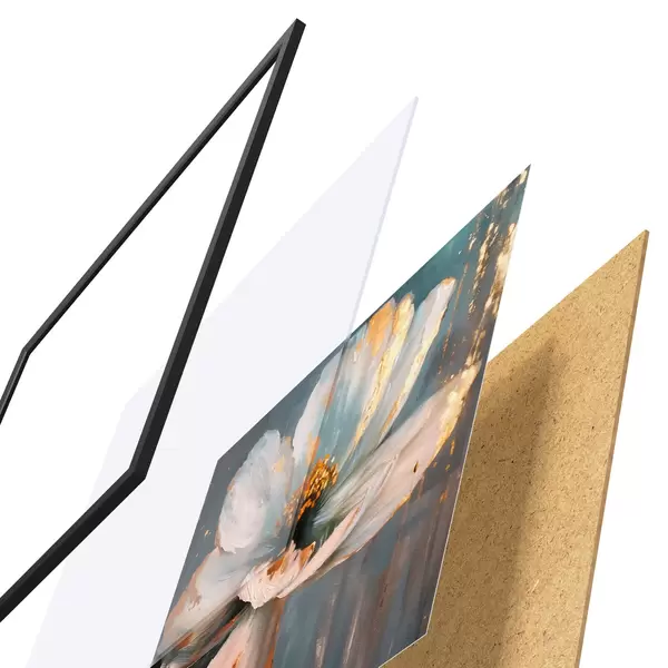 Plakát se skládá z rámu, plexiskla, tištěného obrazu a dřevotřískového podkladu. Díky úchytům na zadní straně lze plakát ihned zavěsit na zeď.