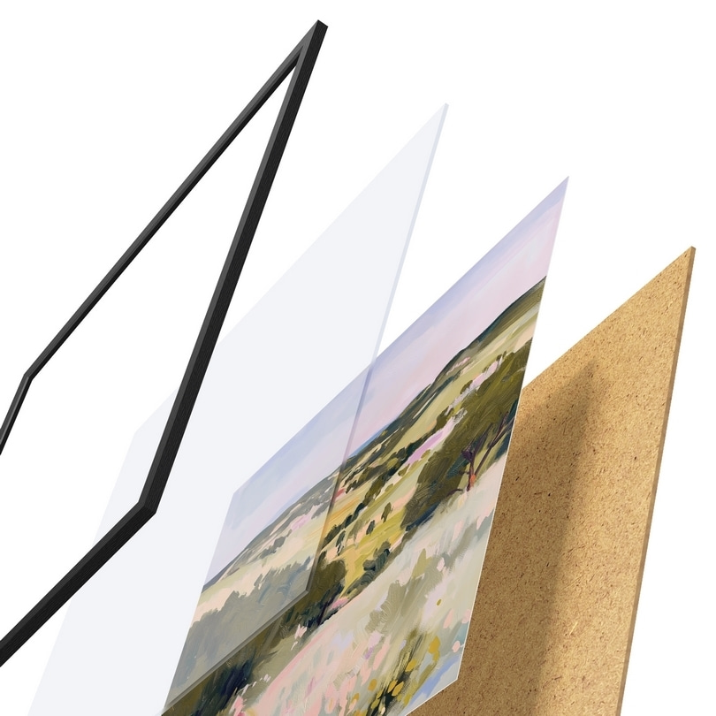 Plakát se skládá z rámu, plexiskla, tištěného obrazu a dřevotřískového podkladu. Díky úchytům na zadní straně lze plakát ihned zavěsit na zeď.