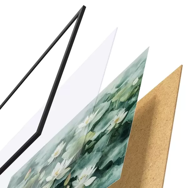 Plakát se skládá z rámu, plexiskla, tištěného obrazu a dřevotřískového podkladu. Díky úchytům na zadní straně lze plakát ihned zavěsit na zeď.