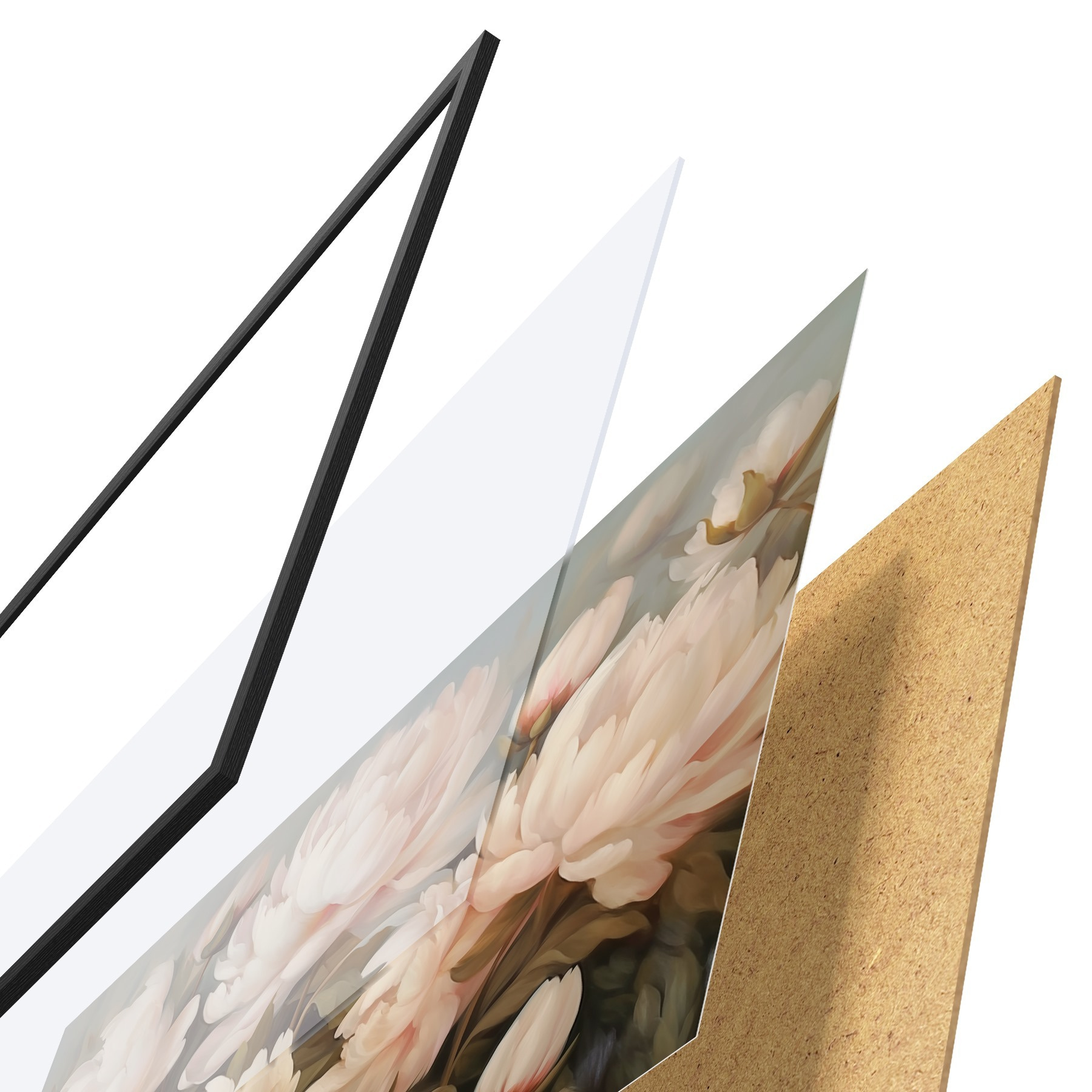Plakát se skládá z rámu, plexiskla, tištěného obrazu a dřevotřískového podkladu. Díky úchytům na zadní straně lze plakát ihned zavěsit na zeď.