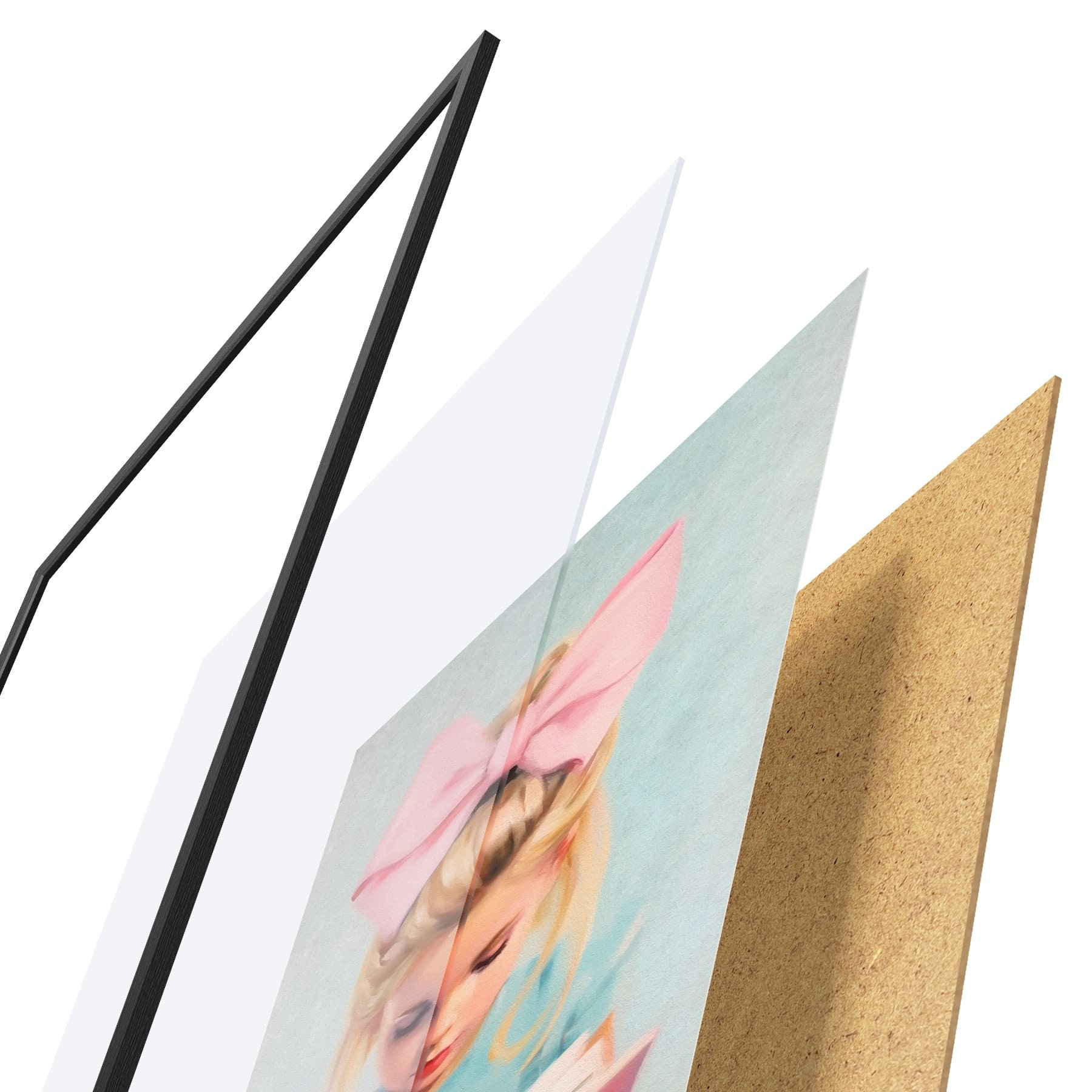 Plakát se skládá z rámu, plexiskla, tištěného obrazu a dřevotřískového podkladu. Díky úchytům na zadní straně lze plakát ihned zavěsit na zeď.