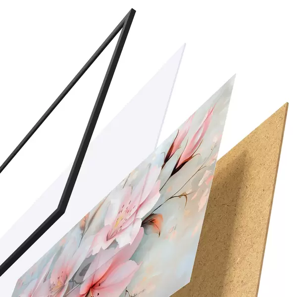 Plakát se skládá z rámu, plexiskla, tištěného obrazu a dřevotřískového podkladu. Díky úchytům na zadní straně lze plakát ihned zavěsit na zeď.