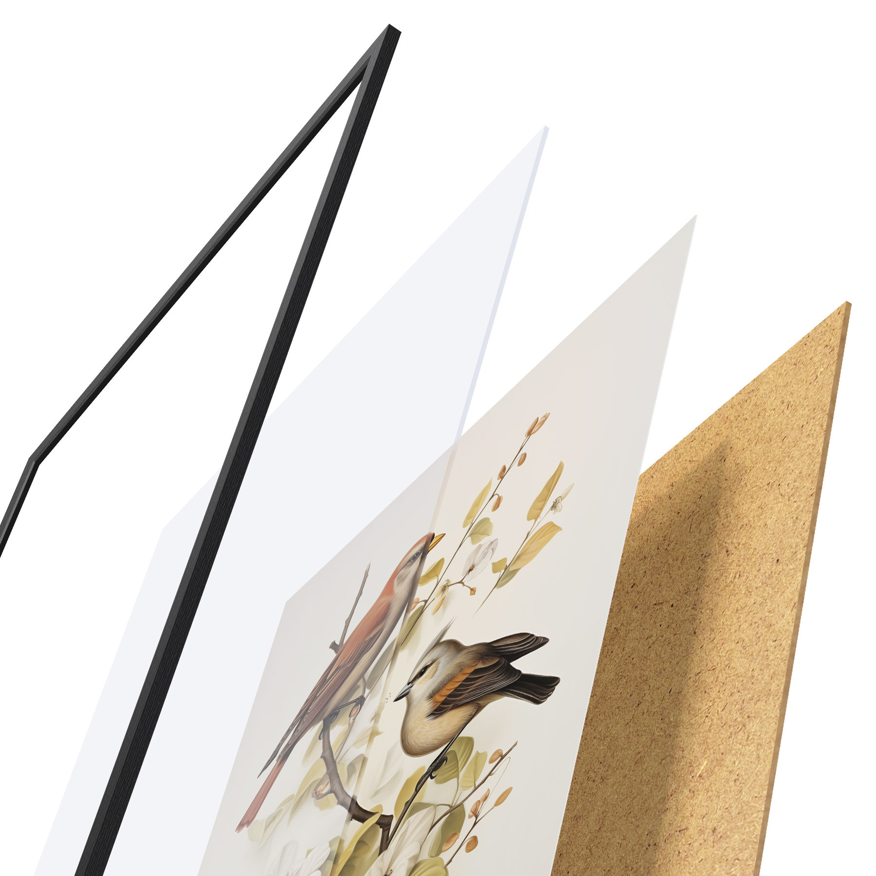 Plakát se skládá z rámu, plexiskla, tištěného obrazu a dřevotřískového podkladu. Díky úchytům na zadní straně lze plakát ihned zavěsit na zeď.