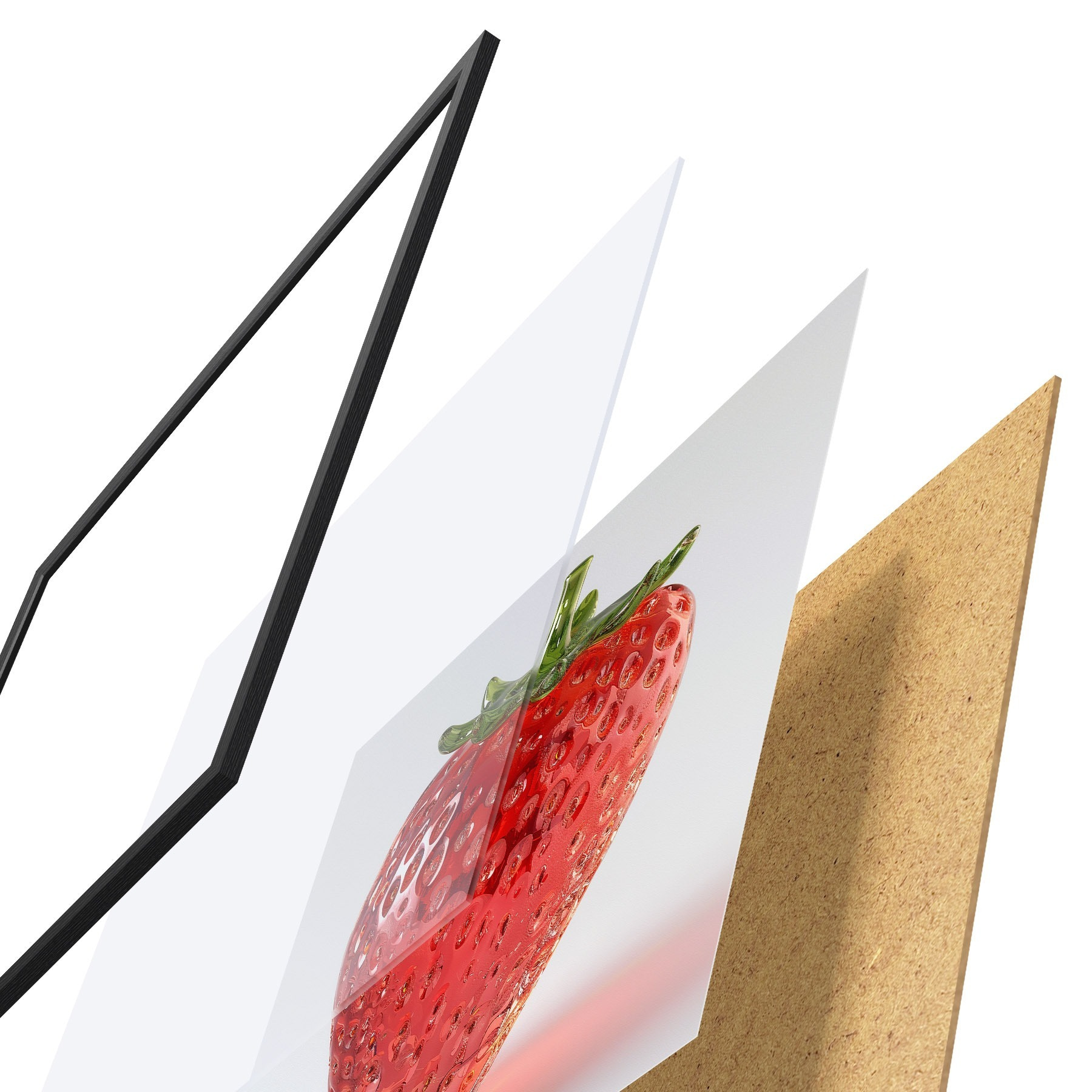 Plakát se skládá z rámu, plexiskla, tištěného obrazu a dřevotřískového podkladu. Díky úchytům na zadní straně lze plakát ihned zavěsit na zeď.
