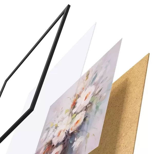 Plakát se skládá z rámu, plexiskla, tištěného obrazu a dřevotřískového podkladu. Díky úchytům na zadní straně lze plakát ihned zavěsit na zeď.