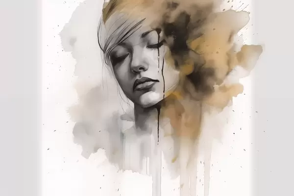 Poster Portrét dívky technikou akvarelu s abstraktními stíny f42474