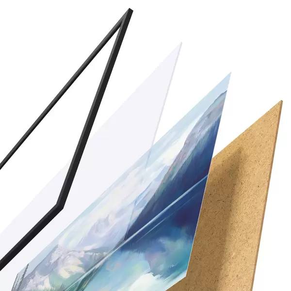 Plakát se skládá z rámu, plexiskla, tištěného obrazu a dřevotřískového podkladu. Díky úchytům na zadní straně lze plakát ihned zavěsit na zeď.