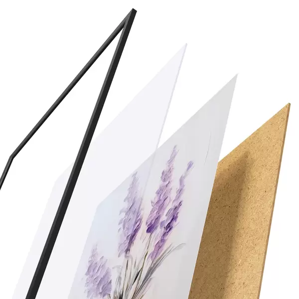 Plakát se skládá z rámu, plexiskla, tištěného obrazu a dřevotřískového podkladu. Díky úchytům na zadní straně lze plakát ihned zavěsit na zeď.