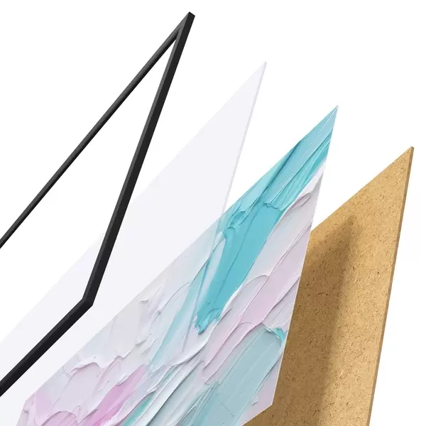 Plakát se skládá z rámu, plexiskla, tištěného obrazu a dřevotřískového podkladu. Díky úchytům na zadní straně lze plakát ihned zavěsit na zeď.