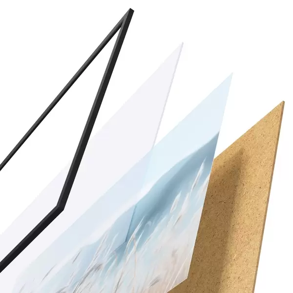 Plakát se skládá z rámu, plexiskla, tištěného obrazu a dřevotřískového podkladu. Díky úchytům na zadní straně lze plakát ihned zavěsit na zeď.