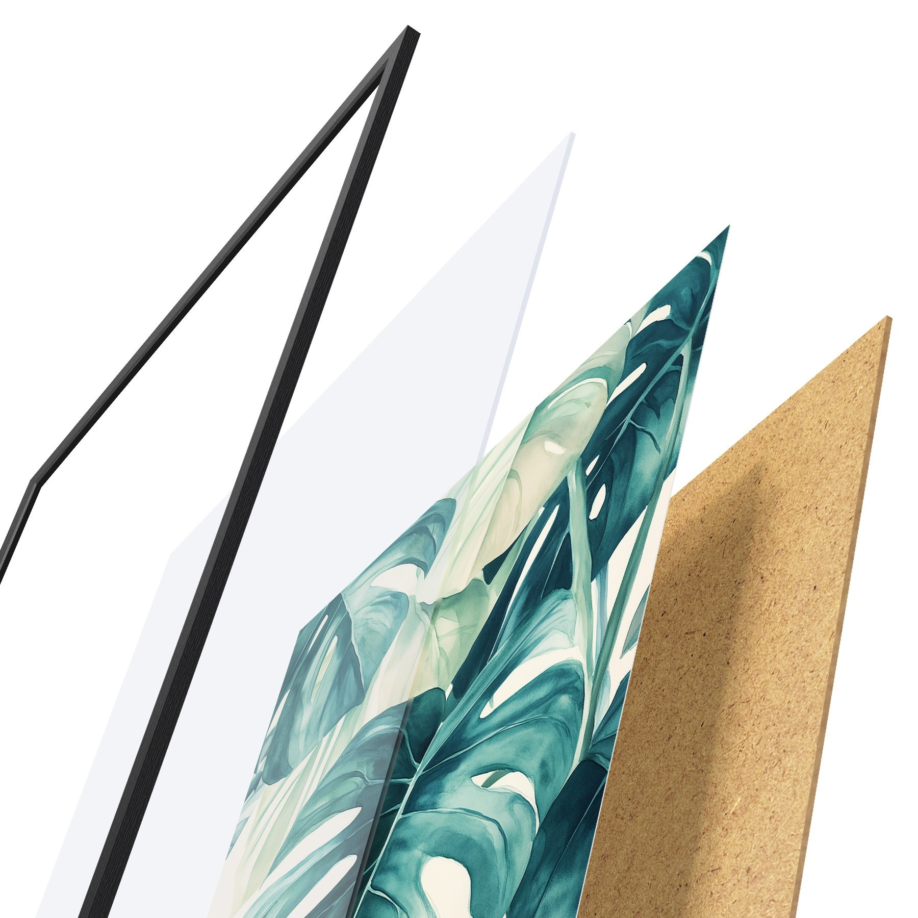 Plakát se skládá z rámu, plexiskla, tištěného obrazu a dřevotřískového podkladu. Díky úchytům na zadní straně lze plakát ihned zavěsit na zeď.