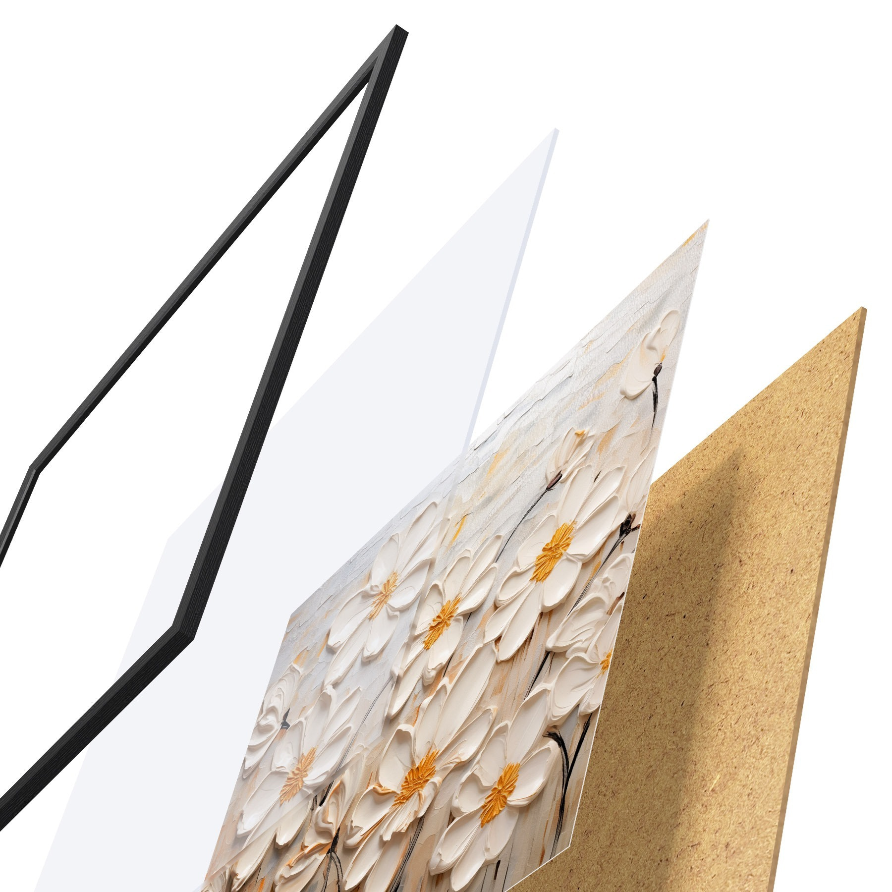 Plakát se skládá z rámu, plexiskla, tištěného obrazu a dřevotřískového podkladu. Díky úchytům na zadní straně lze plakát ihned zavěsit na zeď.