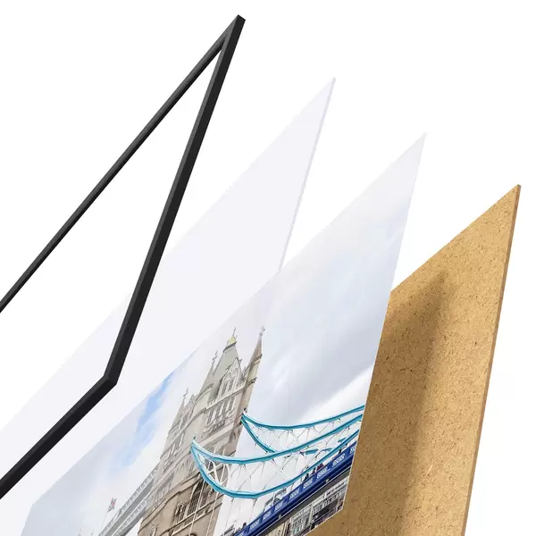 Plakát se skládá z rámu, plexiskla, tištěného obrazu a dřevotřískového podkladu. Díky úchytům na zadní straně lze plakát ihned zavěsit na zeď.