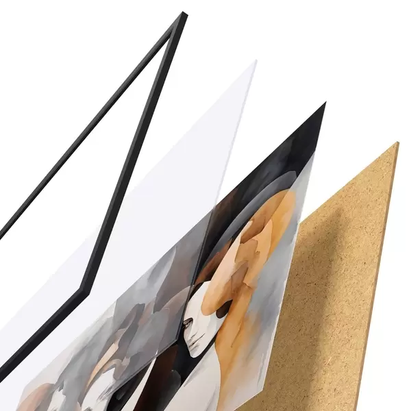 Plakát se skládá z rámu, plexiskla, tištěného obrazu a dřevotřískového podkladu. Díky úchytům na zadní straně lze plakát ihned zavěsit na zeď.