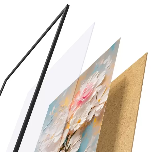 Plakát se skládá z rámu, plexiskla, tištěného obrazu a dřevotřískového podkladu. Díky úchytům na zadní straně lze plakát ihned zavěsit na zeď.