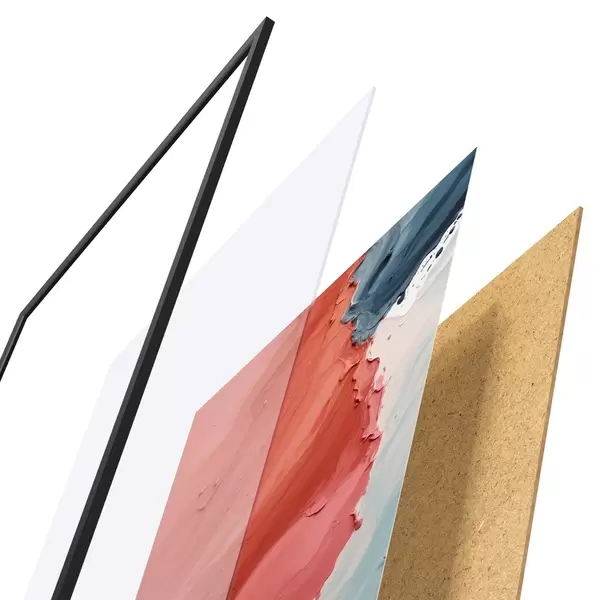 Plakát se skládá z rámu, plexiskla, tištěného obrazu a dřevotřískového podkladu. Díky úchytům na zadní straně lze plakát ihned zavěsit na zeď.