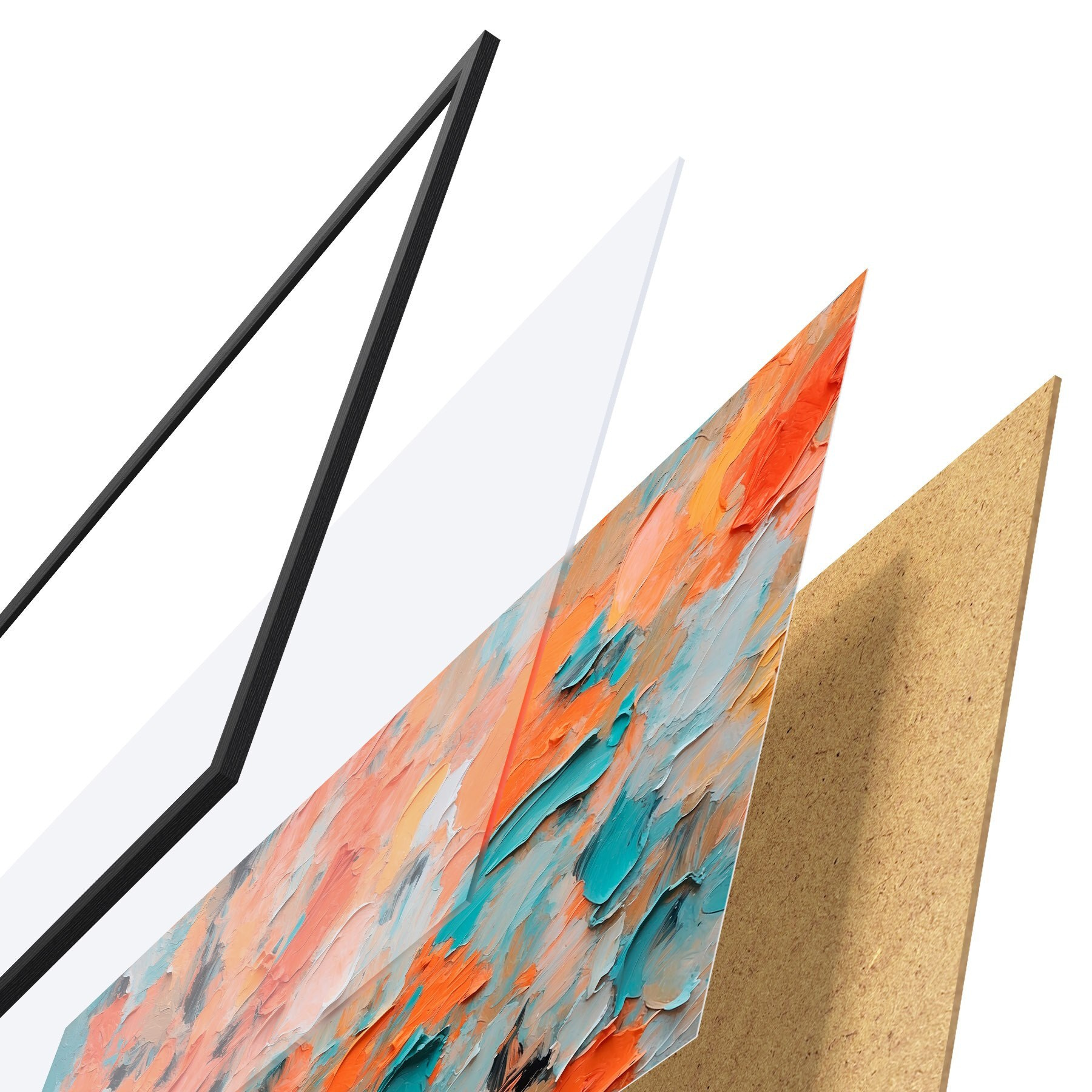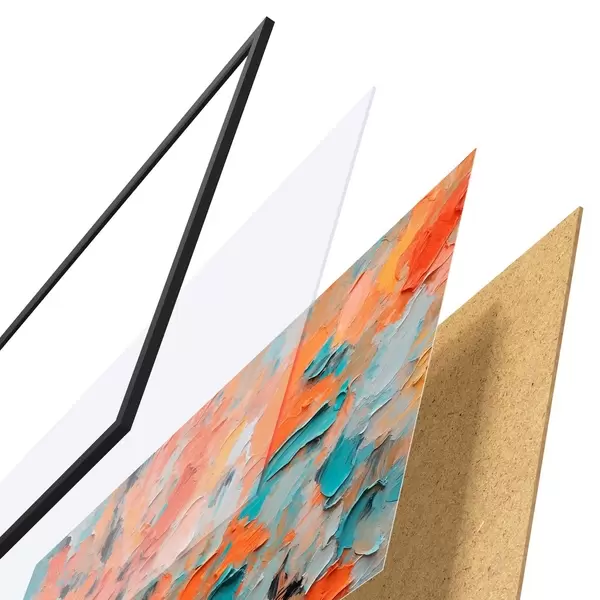 Plakát se skládá z rámu, plexiskla, tištěného obrazu a dřevotřískového podkladu. Díky úchytům na zadní straně lze plakát ihned zavěsit na zeď.