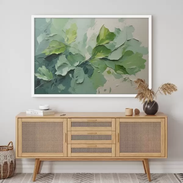 Poster Větev se zelenými listy ve stylu olejomalby f44075