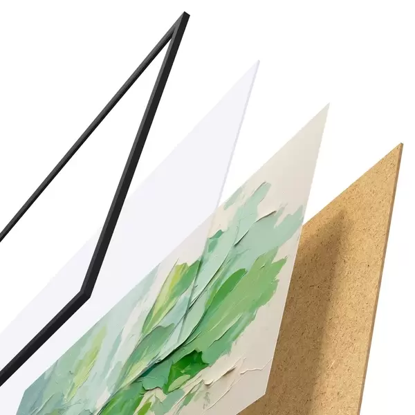 Plakát se skládá z rámu, plexiskla, tištěného obrazu a dřevotřískového podkladu. Díky úchytům na zadní straně lze plakát ihned zavěsit na zeď.