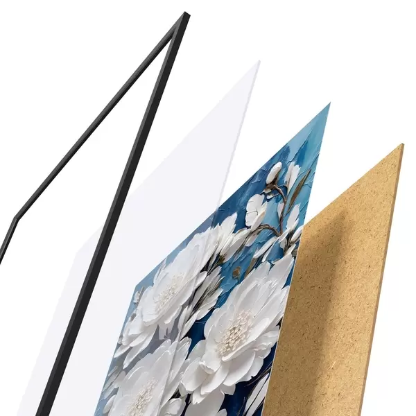 Plakát se skládá z rámu, plexiskla, tištěného obrazu a dřevotřískového podkladu. Díky úchytům na zadní straně lze plakát ihned zavěsit na zeď.