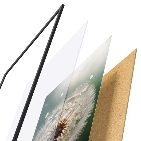 Plakát se skládá z rámu, plexiskla, tištěného obrazu a dřevotřískového podkladu. Díky úchytům na zadní straně lze plakát ihned zavěsit na zeď.