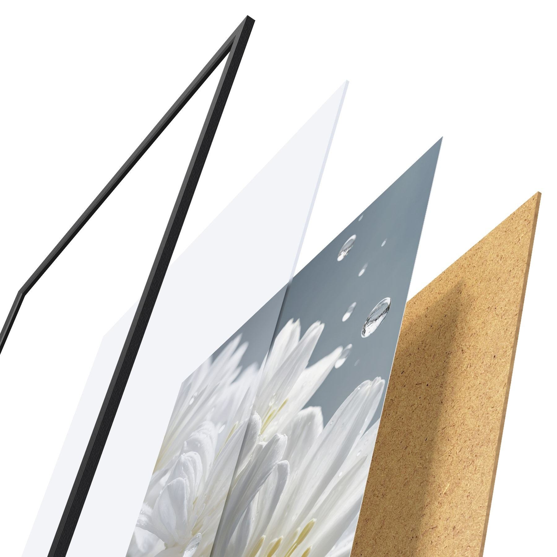 Plakát se skládá z rámu, plexiskla, tištěného obrazu a dřevotřískového podkladu. Díky úchytům na zadní straně lze plakát ihned zavěsit na zeď.