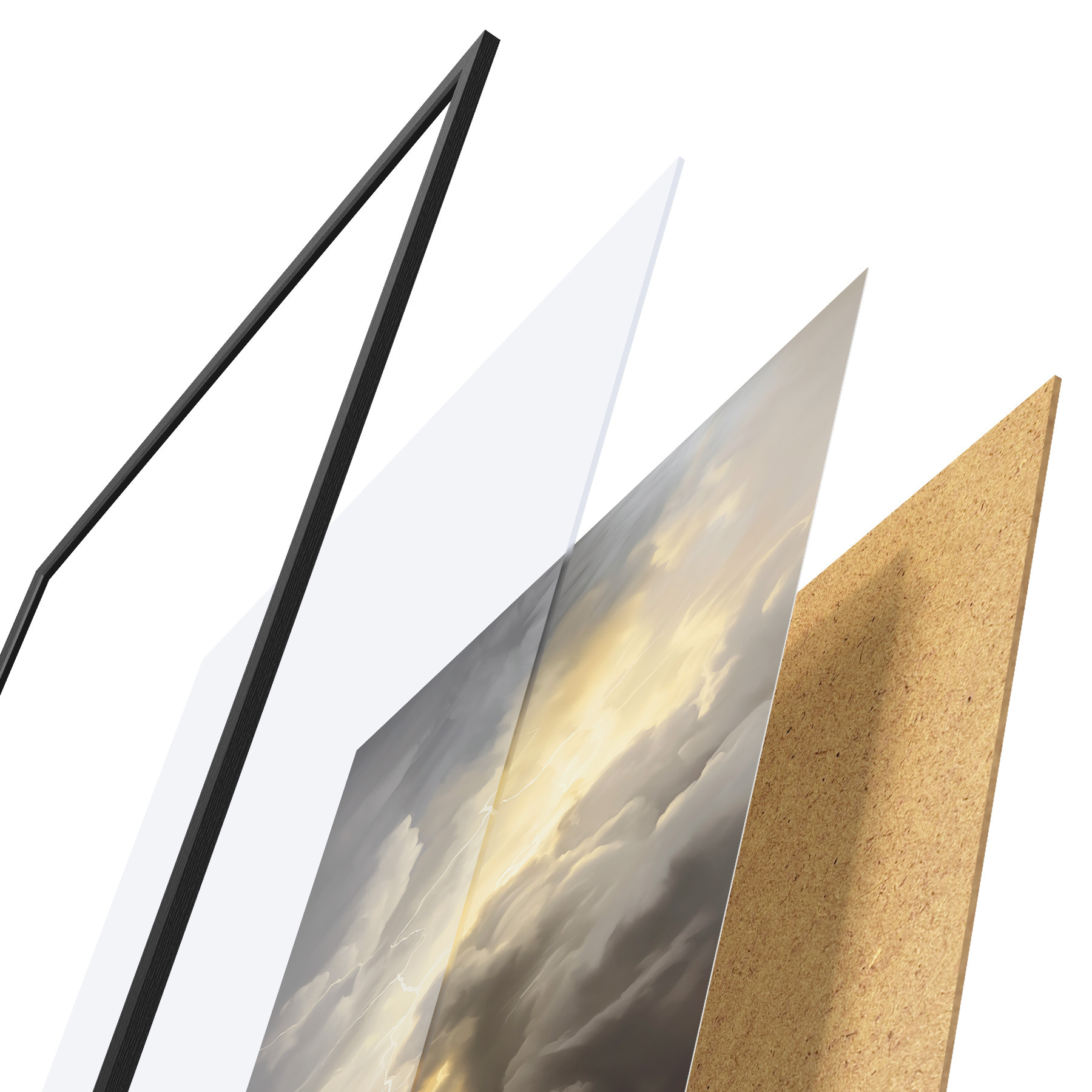 Plakát se skládá z rámu, plexiskla, tištěného obrazu a dřevotřískového podkladu. Díky úchytům na zadní straně lze plakát ihned zavěsit na zeď.